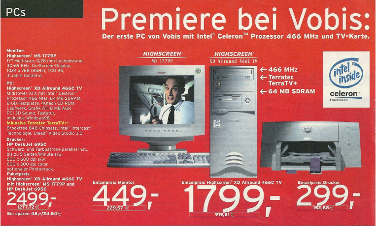 Im Jahr 1999 präsentierte Vobis in seinen Denkzetteln eine auffällige Anzahl von Systemen, die mit Intel Celeron Prozessoren ausgestattet waren, zu Preisen, die für viele Kunden attraktiv erschienen. Die Denkzettel spiegelten eine verstärkte Präsenz von Computern mit Intel Celeron Prozessoren wider, die als kostengünstige Alternative für Nutzer galten.