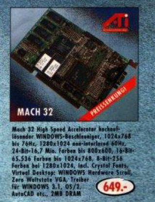 Ein besonderes Angebot im Denkzettel von Dezember 1994 war eine Mirocrystal 40 SV Grafikkarte mit 4 MB VRAM für den PCI Bus, die zu einem Preis von 1295,- DM erhältlich war. Diese Grafikkarte versprach eine hohe Leistung und war keine ganz kostengünstige Option für Nutzer, welche die Grafikfähigkeiten ihres Computers verbessern wollten.
